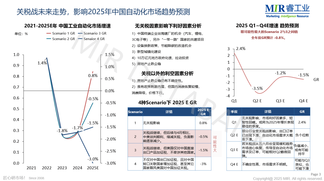 正在无美国关税影响的乐不雅预期下,2025年中国从动化市场无望实现0。8%的增加;然而,若叠加关税影响,市场则将由增转降,估计下降幅度达0。8%。